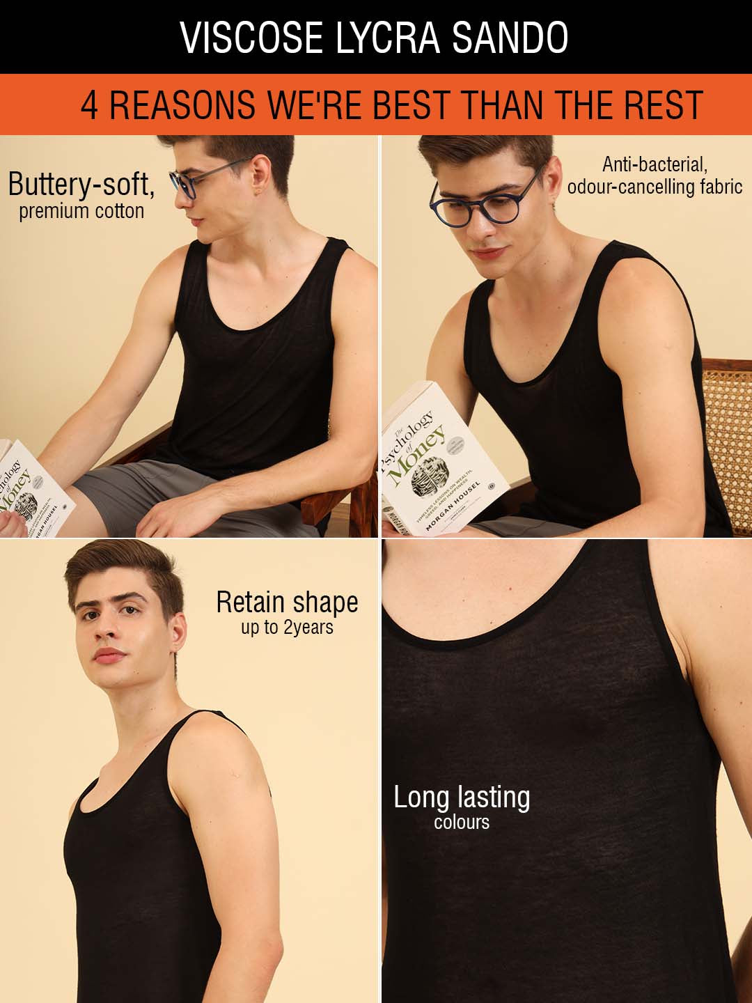Flexy Feel Comfy Light Sleeveless Sando Black