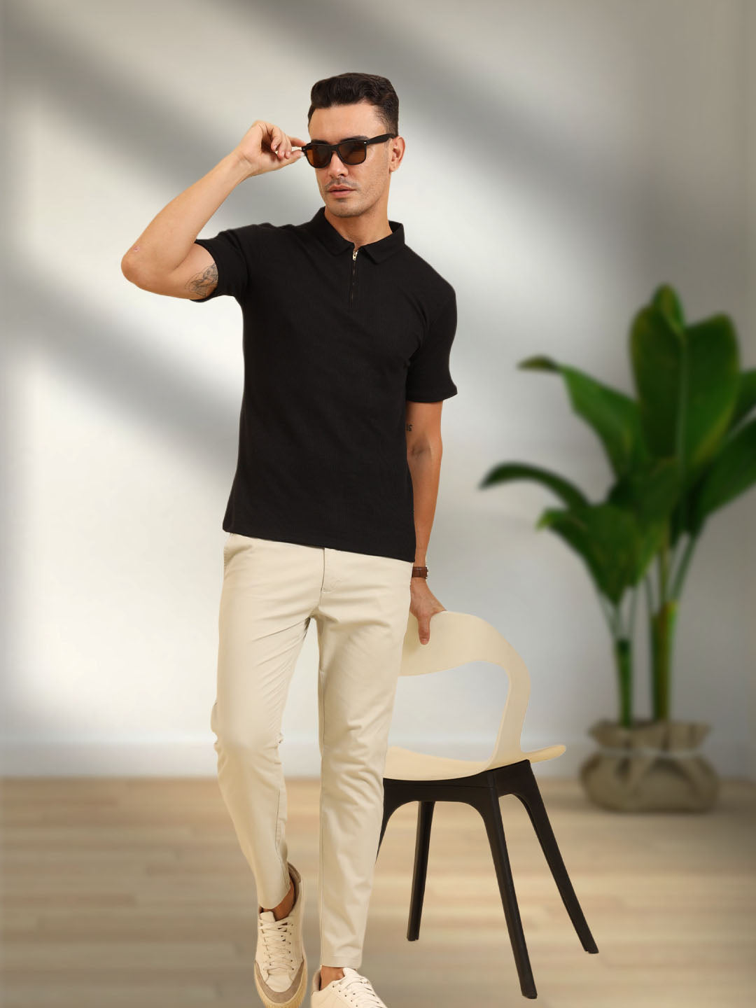 Refined Fit Polo Zipper T-Shirt Black